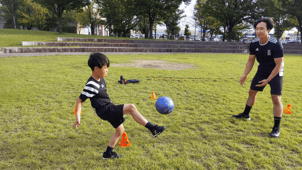 エールSSは、マンツーマンで行う訪問型サッカースクールです。私たちは、すべての選手と保護者様にはエールSSの個人レッスンを通して、笑顔になっていただきたいと考えており、サッカーを通じて、技術的な成長だけではなく、人間力や表現力、挑戦する心など子供たちに応じた成長の機会を提供します。